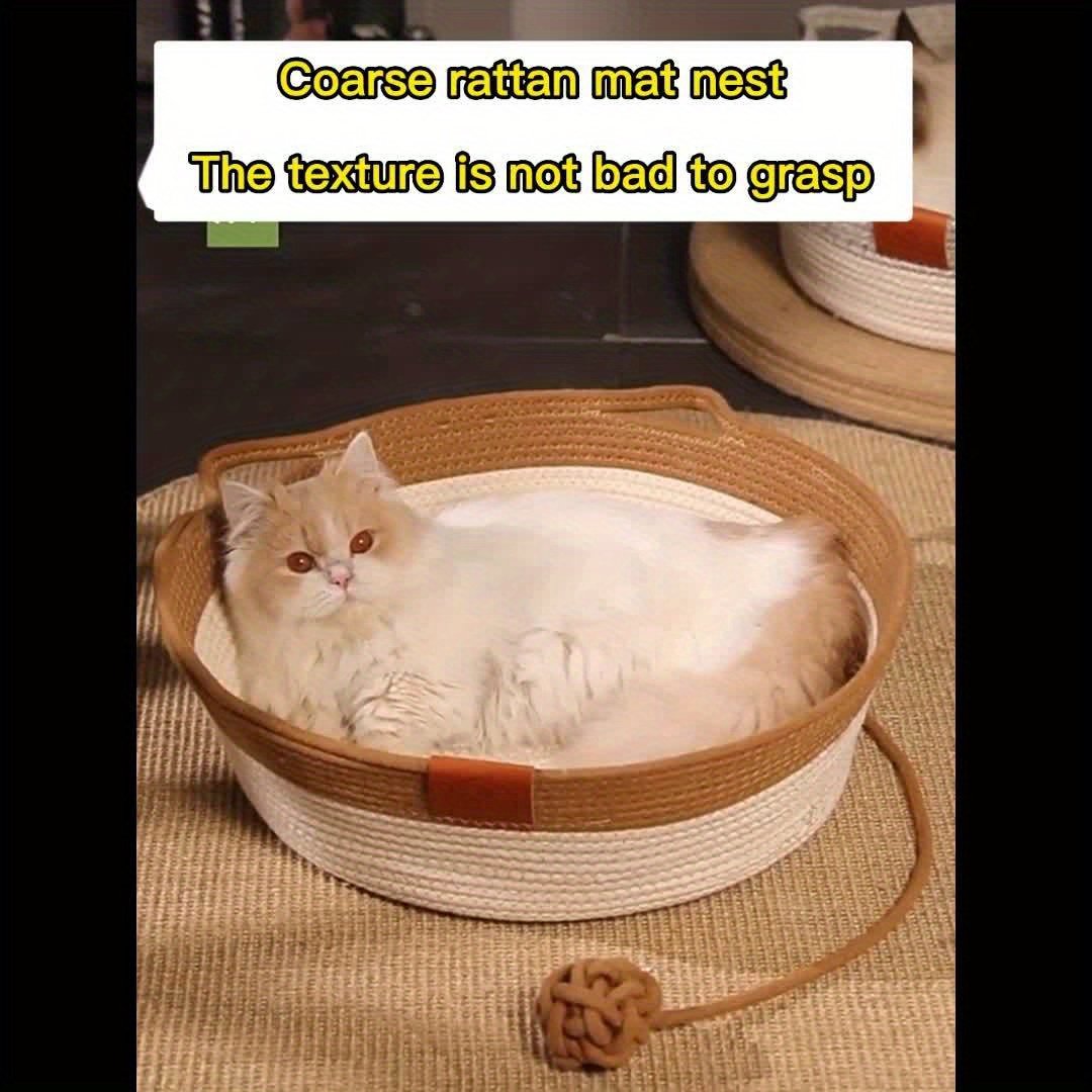 1pc Cozy Round Rattan Cat Bed – Hand-Woven, Soft, Breathable, and Durable – Perfect for Small Cats, Puppies, and Kittens – Round Mat, Puppy Bed, and Cat Basket