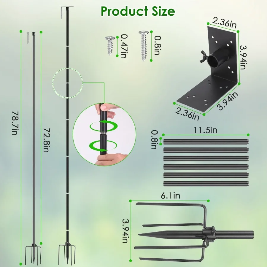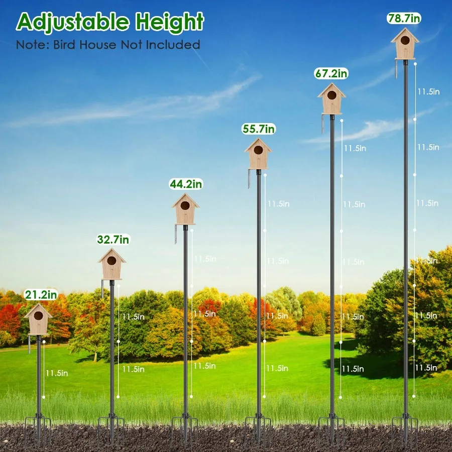 78.7in Bird House Pole Kit Height Adjustable Bird Feeder Pole Mount Kit Heavy Duty Bird House Pole Set with 5 Prongs Base for B