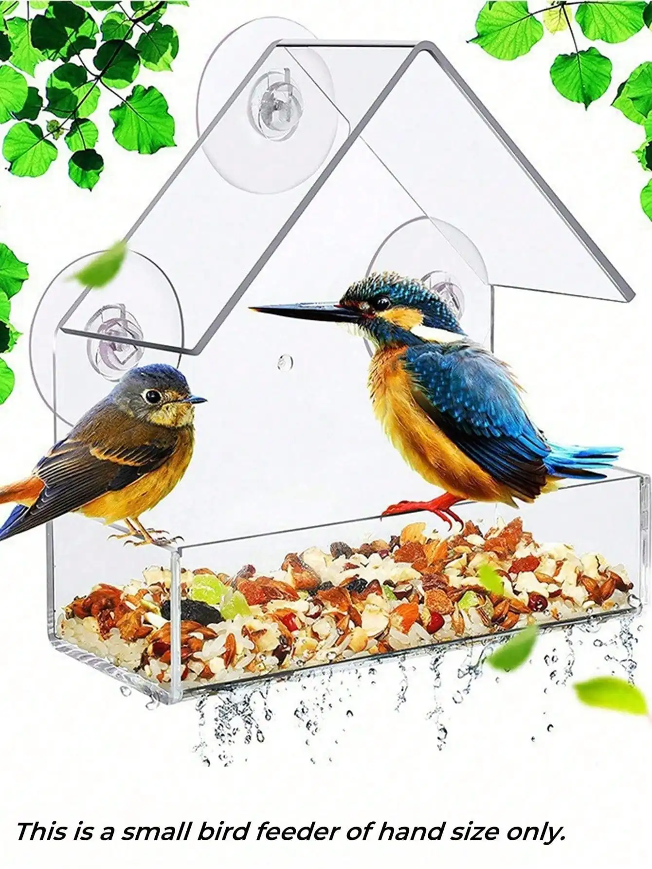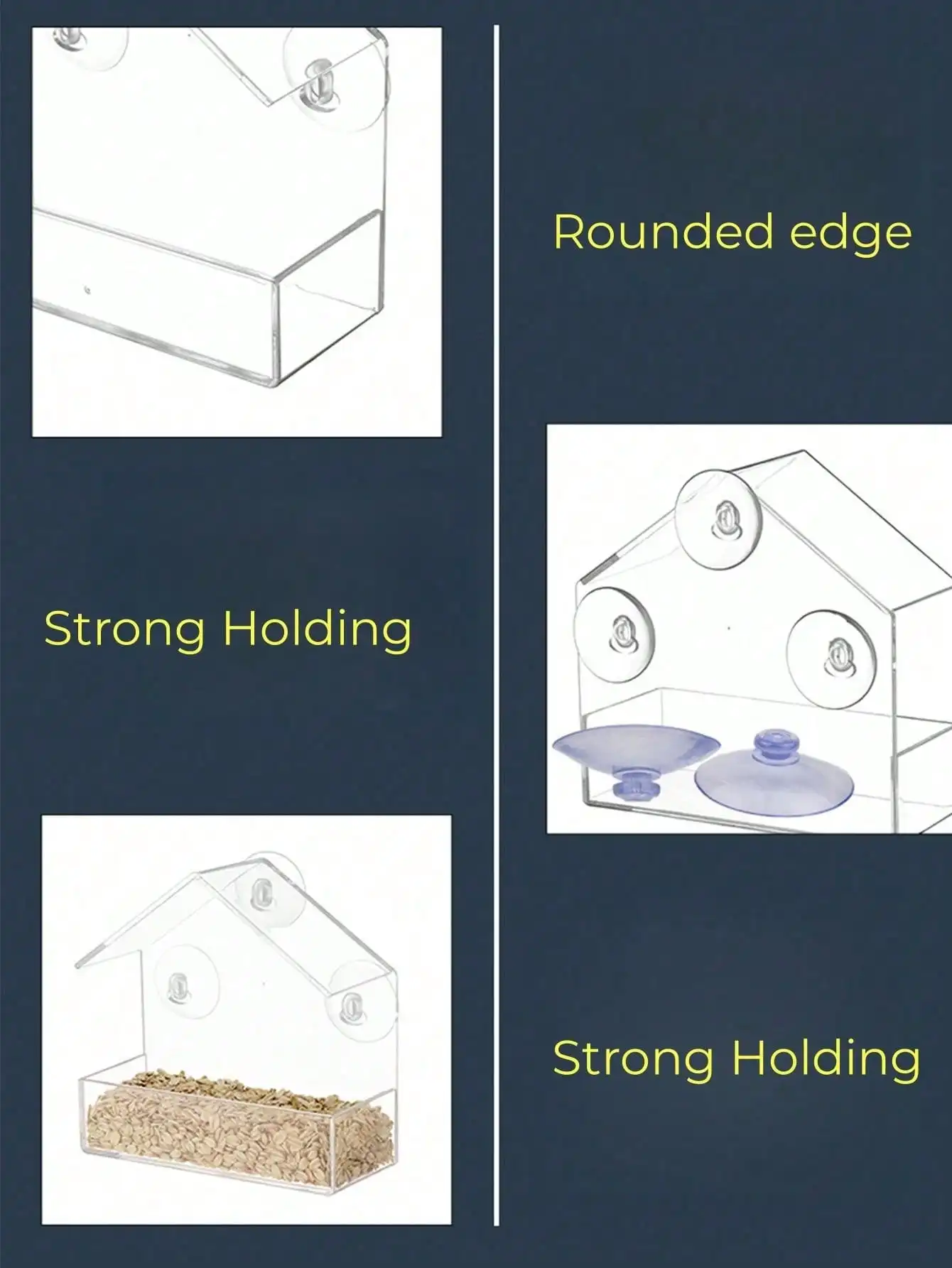 Acrylic Bird Feeder Clear Window Outside Hanging Bird Feeder House with Suction Cup for Garden Outdoor Backyard Wildlife Birding