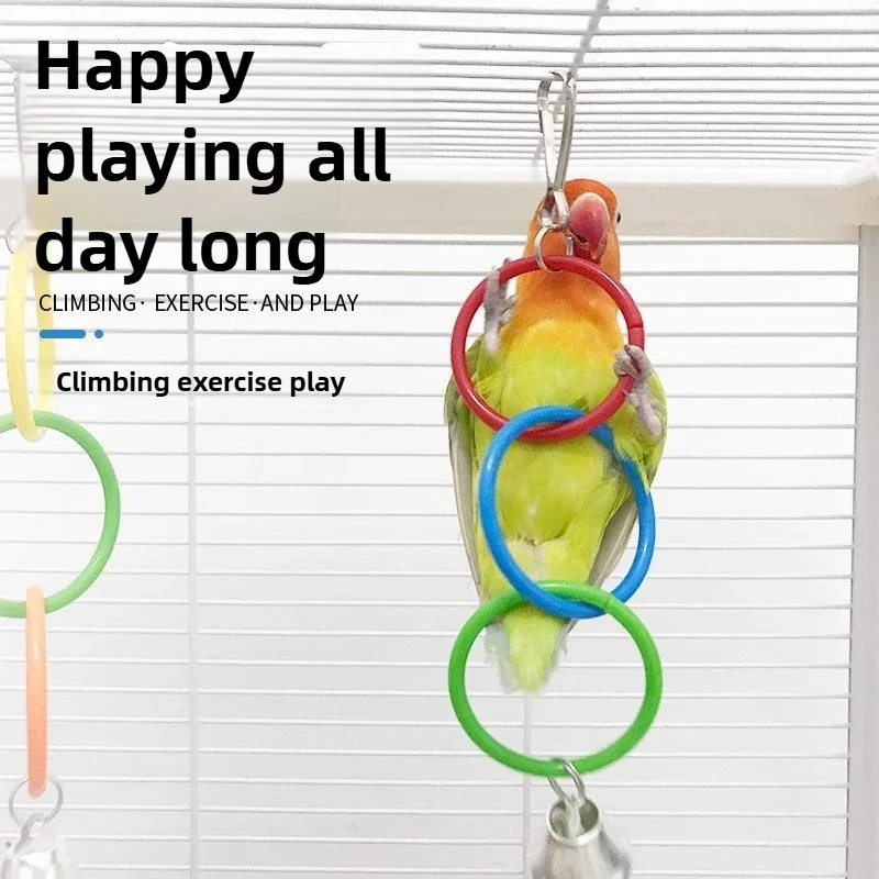 Colorful Bird Plastic Ring Chain Ring Play Round Hook Swing Climbing Cage Toy with Bell Decorated Parrot Toy Birds Cage Decor