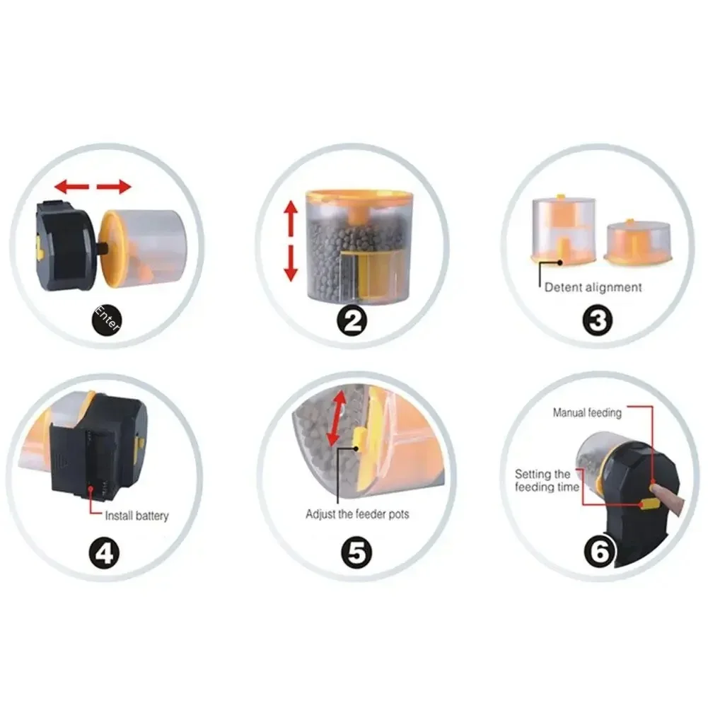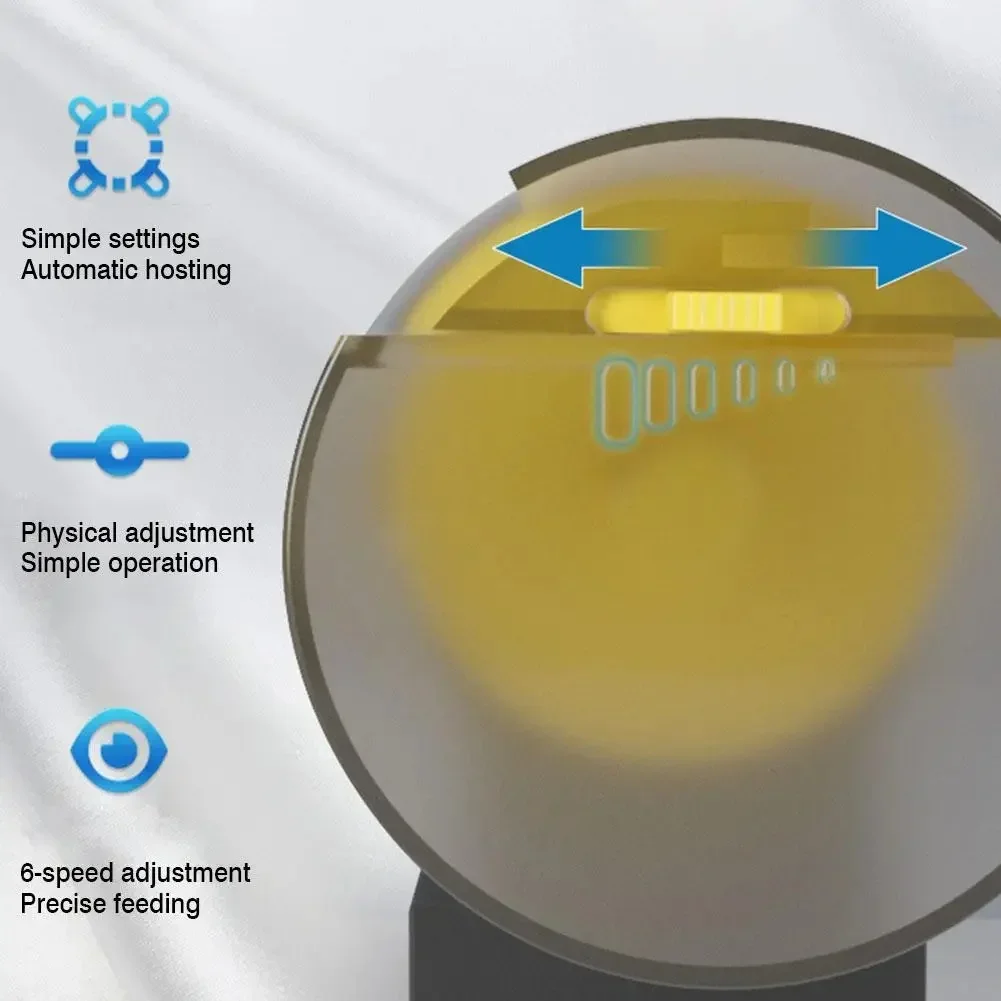 Regarding feeding amount: The feeder can be set to once every 12 hours and once every 24 hours. Depending on the type of fish you are feeding, the feeder opening should be set. It is recommended to feed less and eat more meals, and gradually adjust the reasonable feeding amount to avoid excessive feeding and polluting the water quality.