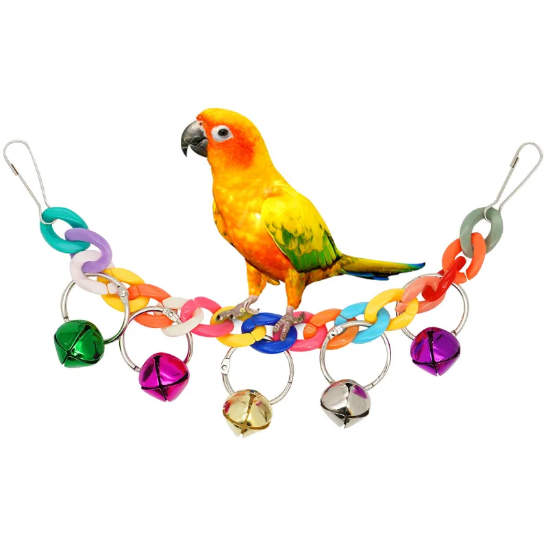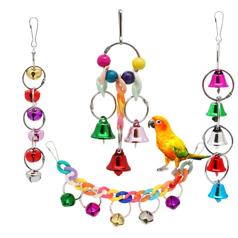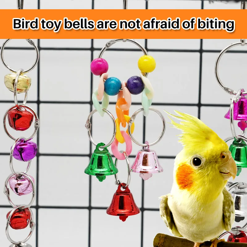 Parrot Bite Toy Bird Ring Bell Parrot Hanging Swing Chain Toy Parakeet Chew Swings Toy with Hanging Bells Bird Cage Bird Toys